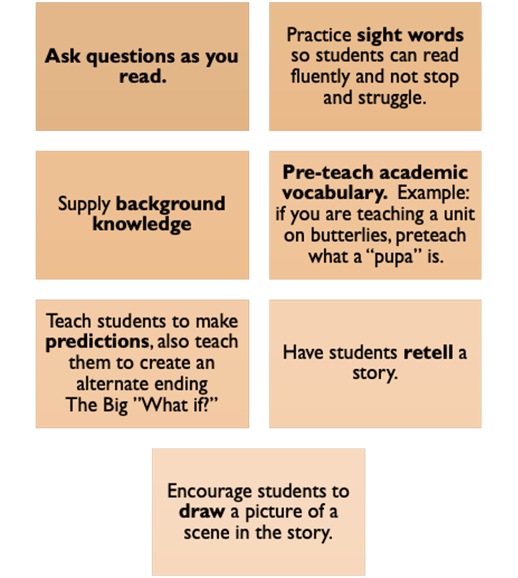 However, NONE of these comprehension strategies is taught in a single mini-lesson. It’s impossible to teach visualization in 15 minutes. Rather, plan and deliver numerous mini-lessons across the year that target the array of sub-skills that will prepare students to visualize independently.