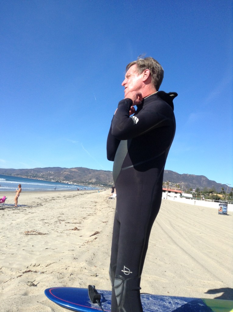 When we got to Oahu, we couldn’t wait to get into the warm water. Here on the Central Coast the water can be numbing. There were already more surfers out than I could count. I did exactly as he said and carried my board like a pro. My husband told me he would be watching me and to remember what he taught me. I didn’t tell him that I forgot it all.