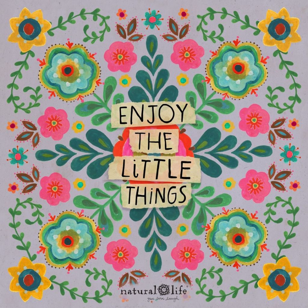My grandson turns two on Monday and he tugged on my blouse the other day. I turned around and he said, ” I love you, grandma, so so much. You’re a good grandma.” I picked him up, held him, and wanted to freeze time. It really is the little things that feed our soul. There is no doubt that when you stop to acknowledge the good, actively move in the direction of your values, and disconnect from anything that gets you off track, you enjoy the little things. I wish you joy.