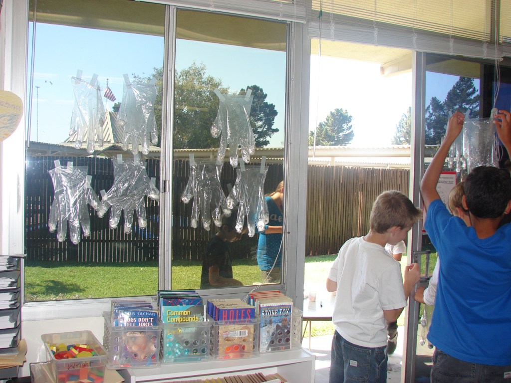My fourth and fifth graders loved experiments. This was a fun way for them to get a close-up view of germination. We planted sunflower seeds by pressing them onto a moistened cotton ball. We used clear plastic gloves and taped them to the windows. The students documented the progress in their science journals. Great fun!