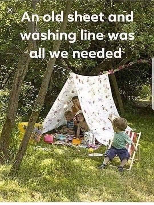 This picture brought to mind how my cousins and I would make do with whatever was handy to create our own environment for play. We didn’t need expensive toys or electronic devices to entertain us, our imaginations did the work. Our creativity flourished in our grandmother’s garage that housed boxes of old clothes that we used to put on plays. We draped a sheet across the wire that held the garage door and it instantly became a theater. We didn’t care if we had an audience or not. A refrigerator box became a puppet theater.