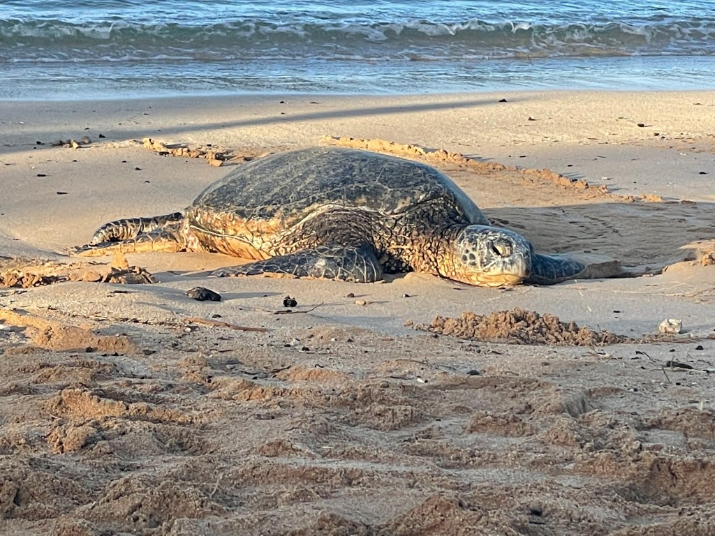 - Do not pour water over a beached turtle or try to push it back into the ocean. (You’d be surprised what people attempt!)