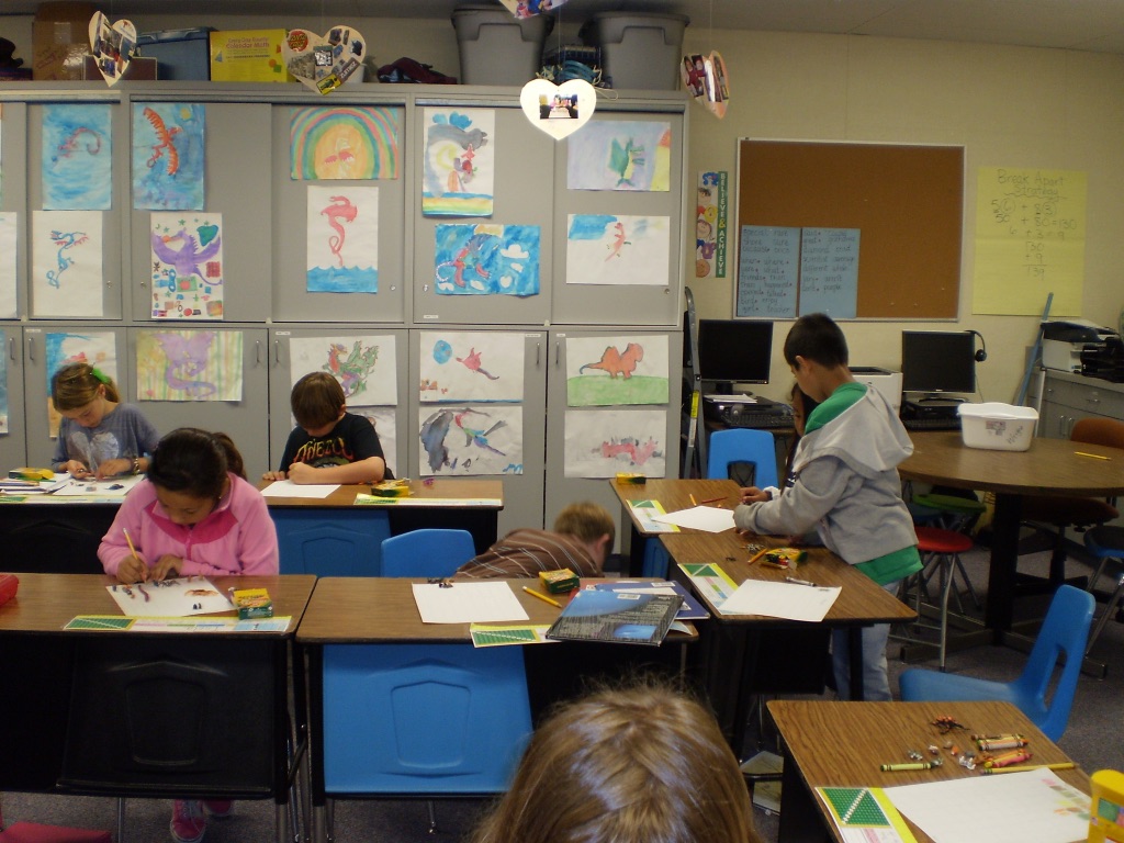 Have students draw a scene from a story you read aloud. They can then write about their drawing.