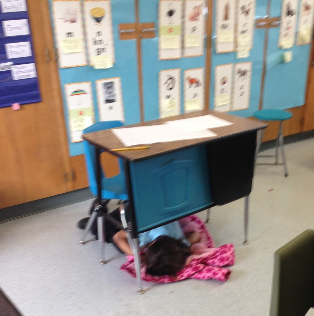 I stayed in my classroom during many lunches to keep her from staying too long on the playground equipment after the bell rang. She refused to line up with the other students and I was the only person who could get her to get down. I had the crazy idea to get out some yard and teach her to knit. She grabbed the yarn and wrapped it around the metal legs of her desk, then crawled under and stayed there. I was told to let her stay there. It took me awhile to realize that it was a safe spot for her.